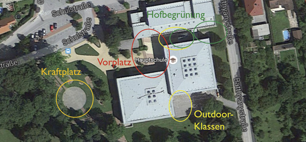 Die Außenraumgestaltung der NMS Pinkafeld bespielt nicht nur den Vorplatz und die Innenhöfe sondern auch Teile des angrenzenden Parkes und schafft durch zwei Outdoorklassen sowie Pflanzbereiche neue Lern- und Erfahrungsräume für die Schüler*innen